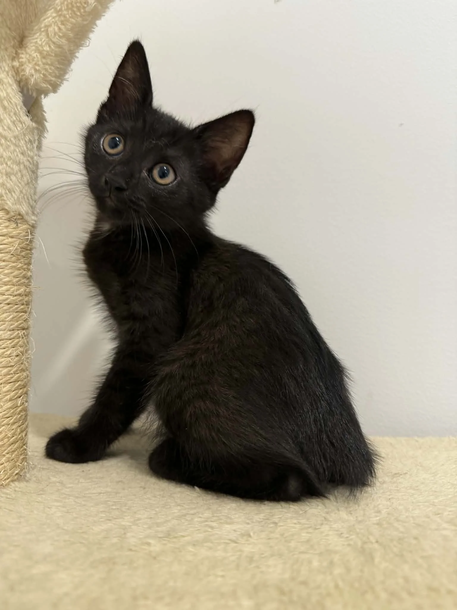 She adores playing with her foster siblings and would absolutely thrive with a confident feline friend in her forever home to help show her the ropes and boost her confidence.