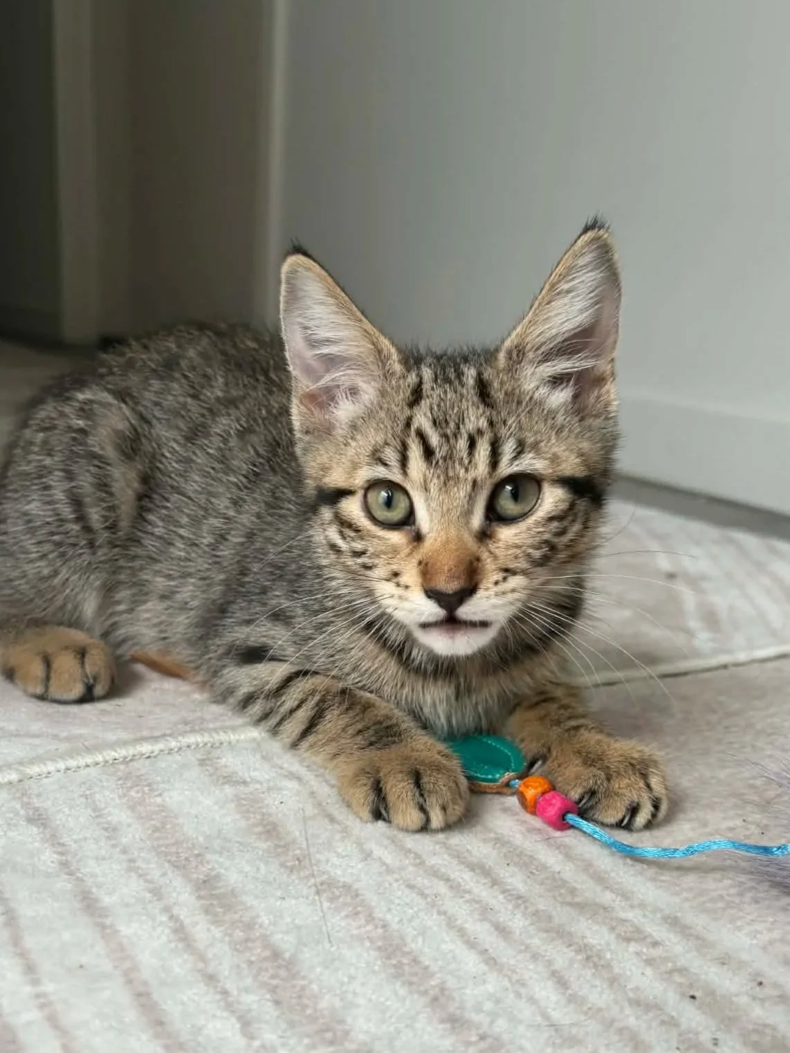 Please ensure all family members are prepared for kitten antics and your home has been kitten proofed. Spruce will need time to adjust to her new surroundings before she feels relaxed and at home. She will need a home where her humans are home more often than not for the first few weeks to make sure she keeps safe. We recommend having a small kitten room or pen set up for nighttime, when you’re not at home, or unable to fully keep an eye on her.